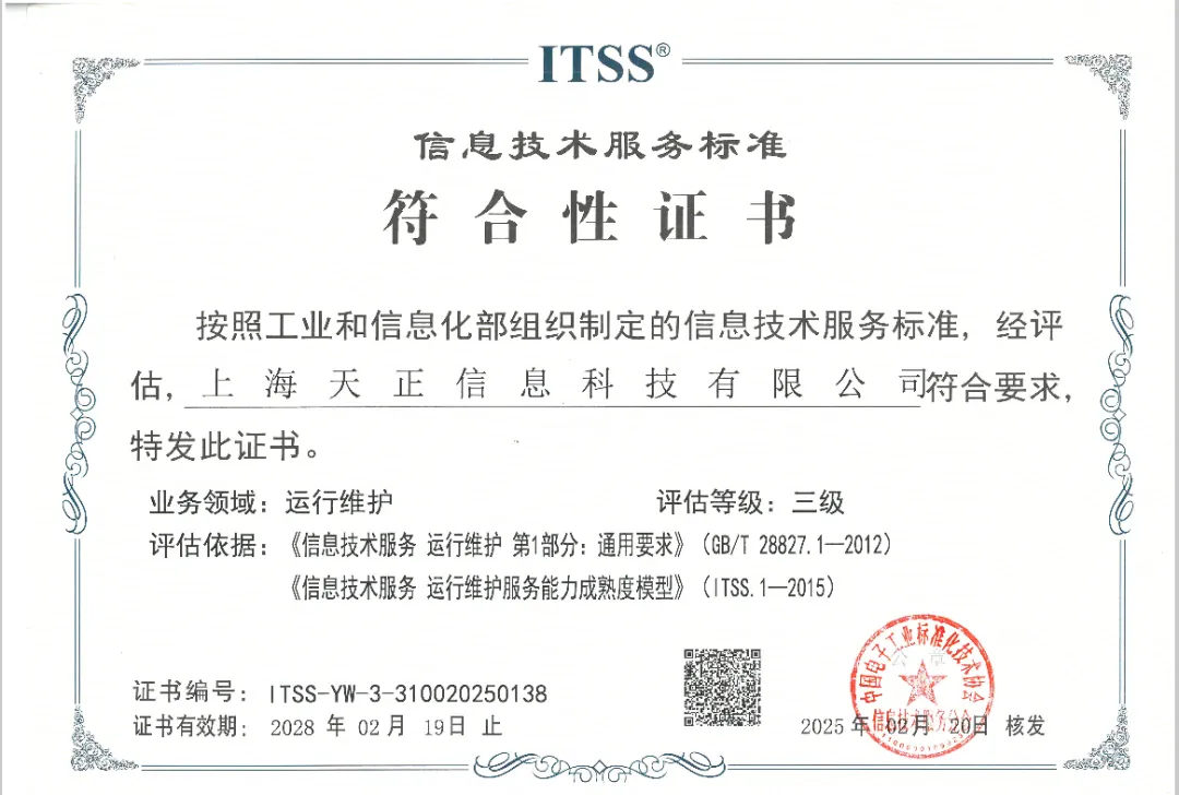 03-18◎喜報(bào)!熱烈慶祝天正信息成功通過(guò)ITSS三級(jí)認(rèn)證,邁向服務(wù)新高度!
